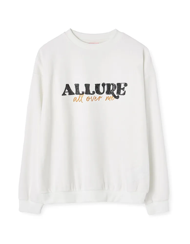 Sweatshirt.Allure velvet printed sweatshirt.76% Cotton, 24% Polyester.