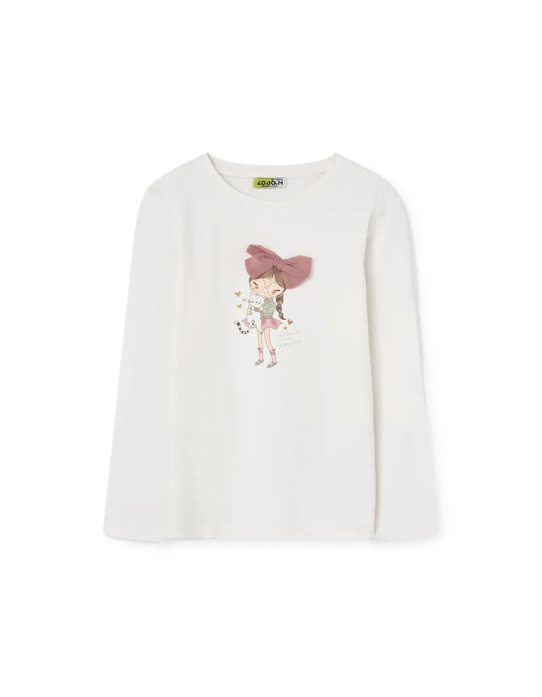 T-shirt LS.Girl with bow and jaime ma poupee printed t-shirt.96% Cotton, 4% Elastane.