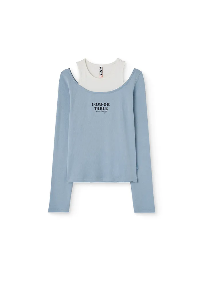 T-shirt LS.Comfortable printed ribbed t-shirt with white eyeshirt under.97% Cotton, 3% Elastane.
