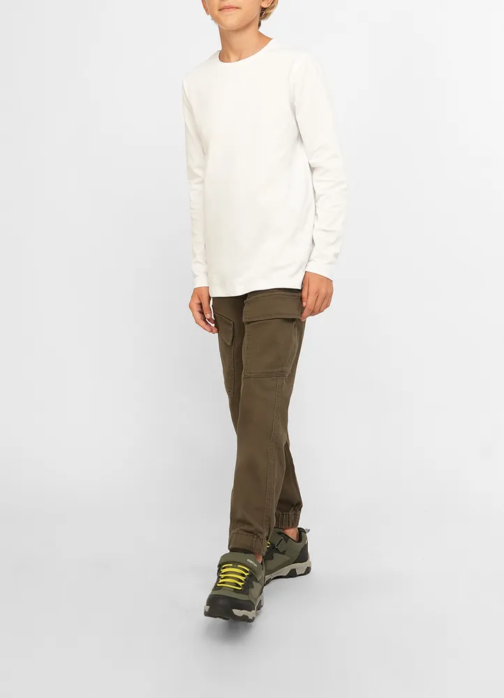 Cargo Pants.Drawstring cargo pants with front pockets and one back patch pocket.97% Cotton, 3% Spandex.
