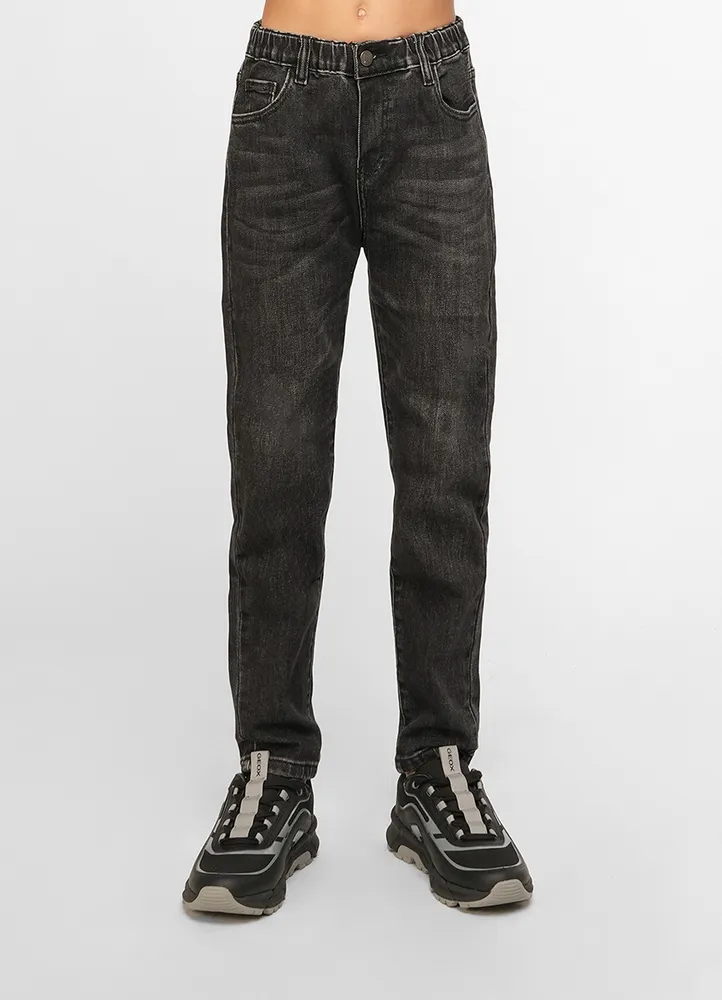 Jeans.Stretch elastic waist denim straight jeans-95% Cotton, 4% Polyester, 1% Spandex.