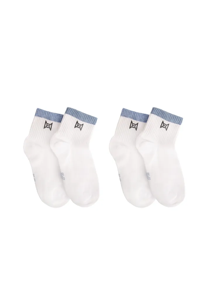 Pack of two plain mid socks with stripe on top.