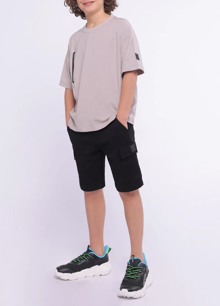 Plain oversized t-shirt with scuba vertical zipped pocket contrast on chest.