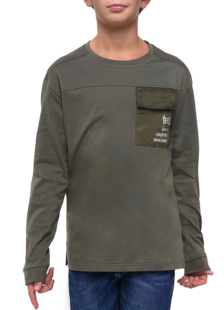 Long sleeve t-shirt with nylon adventure is a journey print pocket on chest.