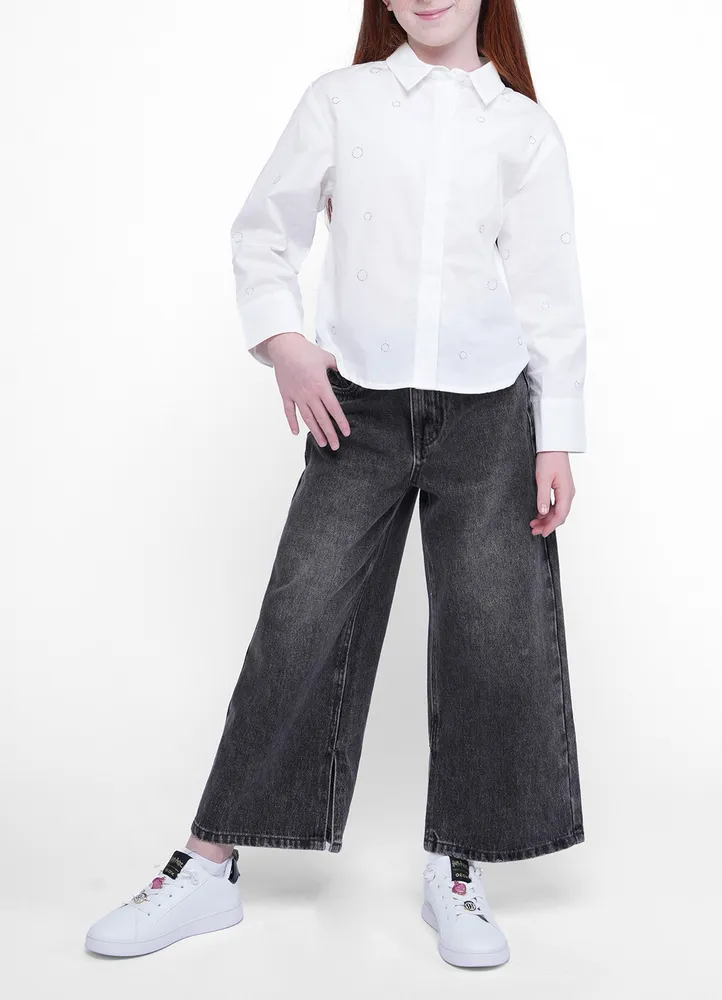 Poplin shirt with circles strass.