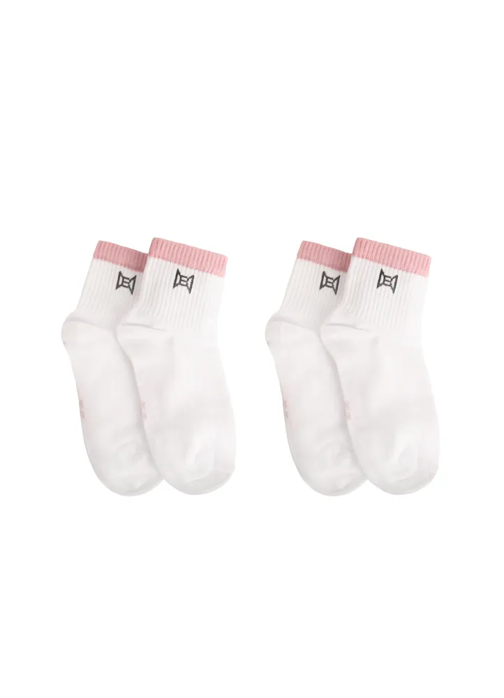 Pack of two plain mid socks with stripe on top.
