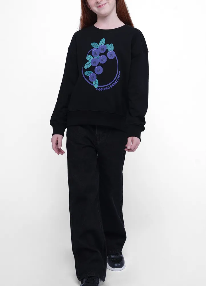 Crew neck sweatshirt with blueberry print and feeling berry good back print.
