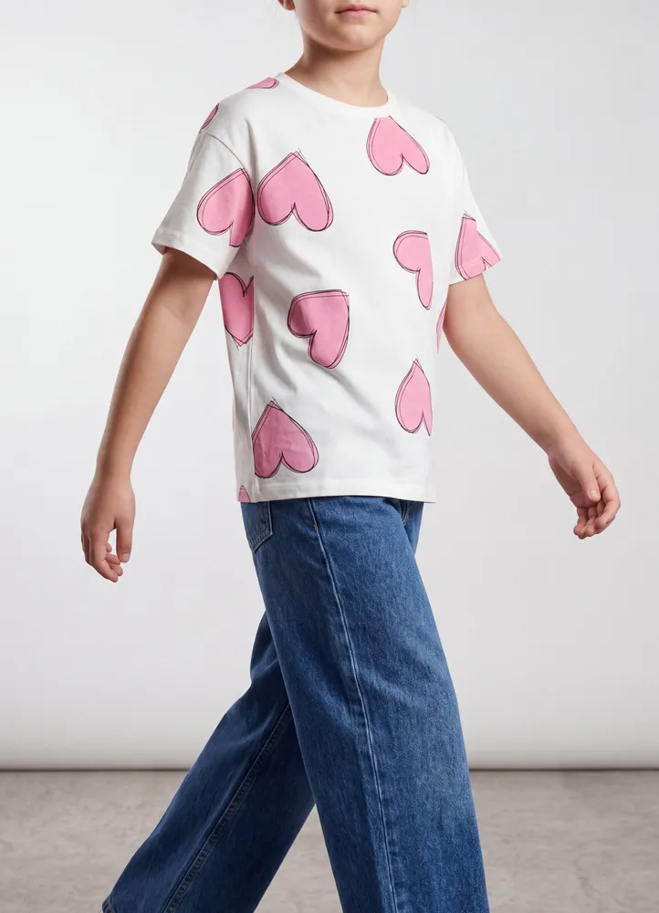 Hearts patterned t-shirt.