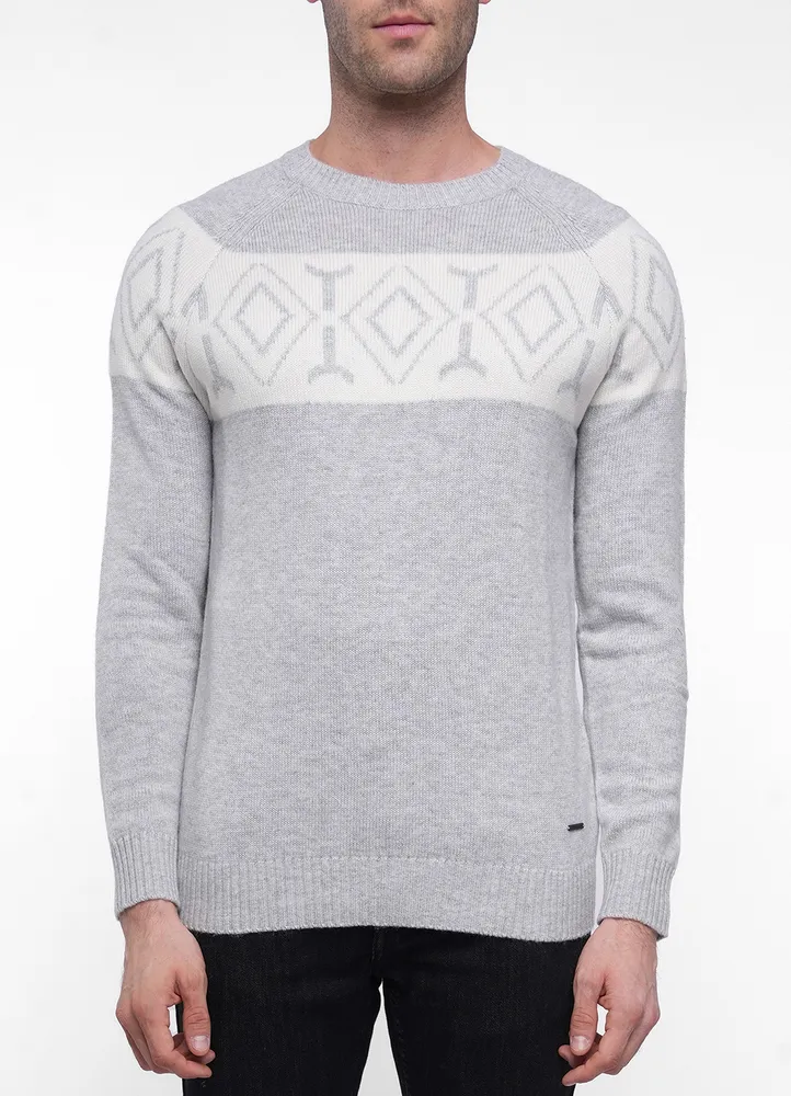Phelps wool mix crew neck sweater with mid jaquard pattern.
