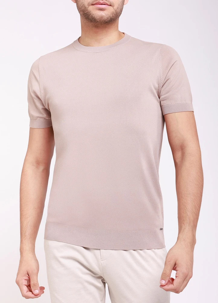 Technical plain crew neck t-shirt with Maison Brown metal branding on bottom.