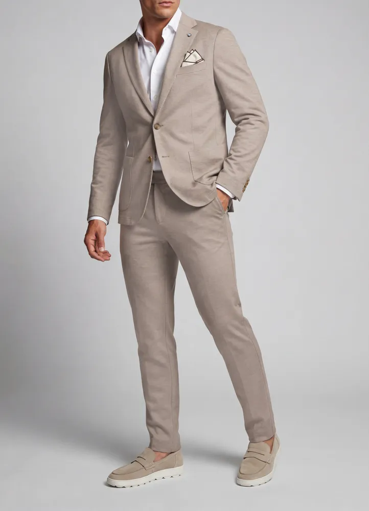 Drop 8 jersey flex structure pique sport coat with no lining and patch pockets.