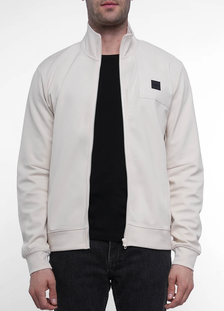 Full zip sweatshirt with nylon contrast on chest featuring Maiosn Brown square rubber badge and invisible zipped side pockets.