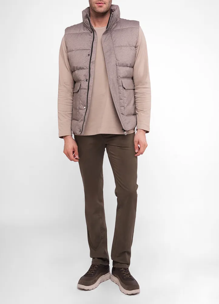 puffed quilted tonal small herringbone nylon bodywarmer with double pockets.