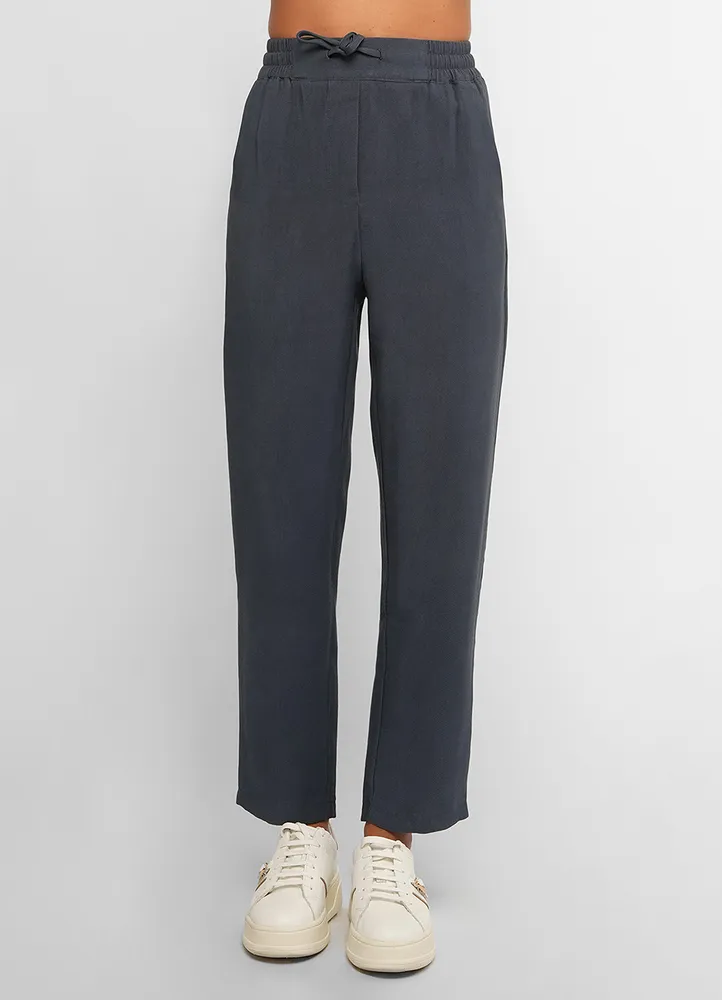 High waist drawstring pants in pique fabric with an elastic waistband and adjustable drawstring.