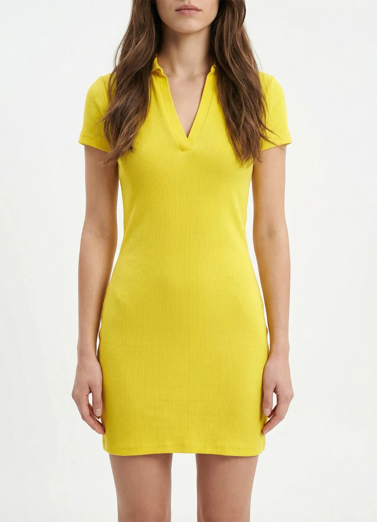 Mini polo collar dress with short sleeves.
