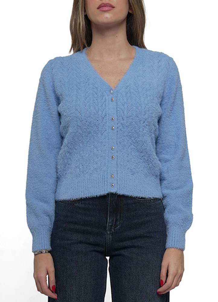 knitwear Cardigan with silver button closure.