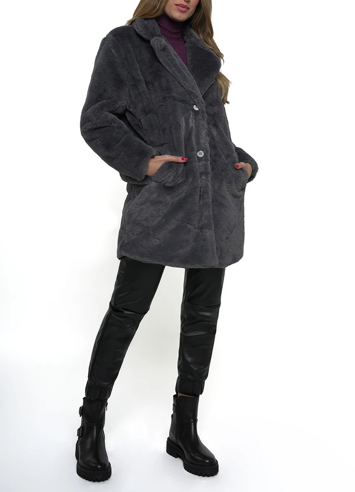 Fur like long Jacket with side pockets and full button Closure.