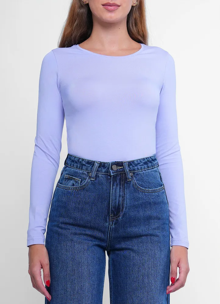 Long sleeves, crew neck basic t-shirt.