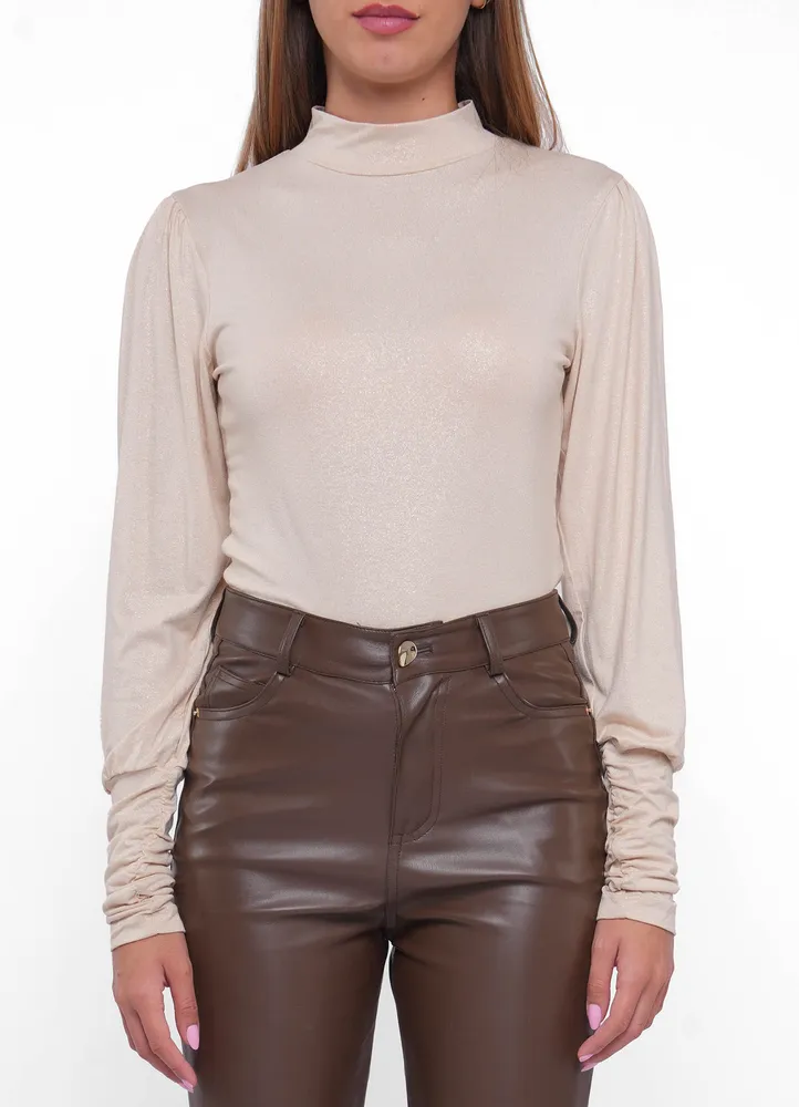 LS high neck t-shirt with gathered details on cuffs, Perfect for adding a stylish detail to your everyday wardrobe.