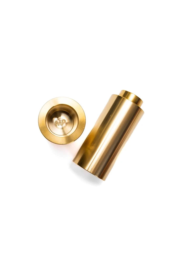 Candel holder brass – FOLIES 1919 – with double function: on one side it holds a thin candle (diameter 1cm) and on the other a classic candle – Stackable.