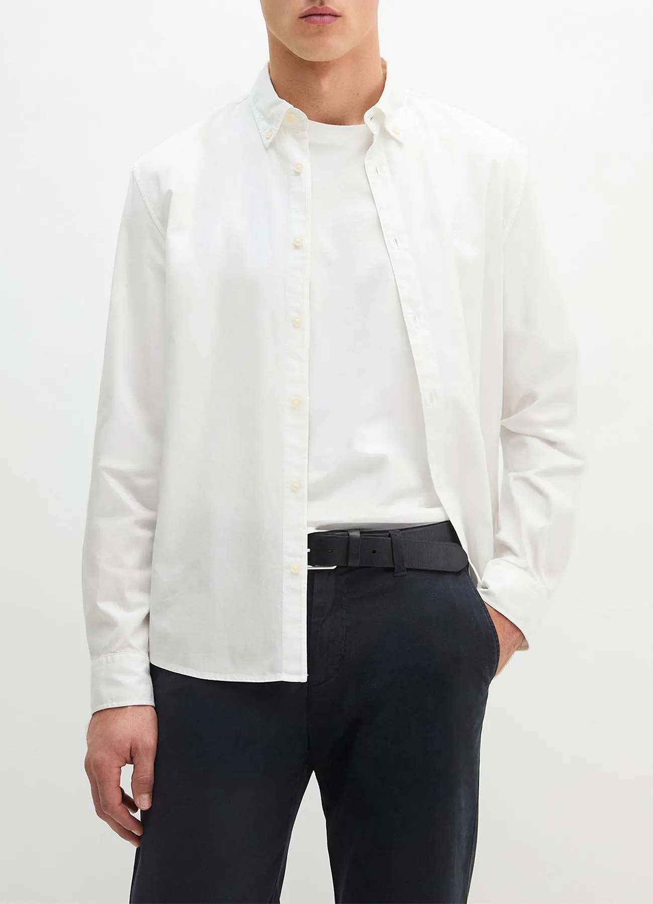 Long-sleeved shirt made from pure, certified organic cotton in the finest Bedford corduroy texture, a robust, woven fabric with diagonal ribbing. Classic regular fit with button-down collar, long sleeves, double cuffs and buttoned armhole. The rounded hemline and industrial pre-wash ensure a particularly soft, fuller feel.
