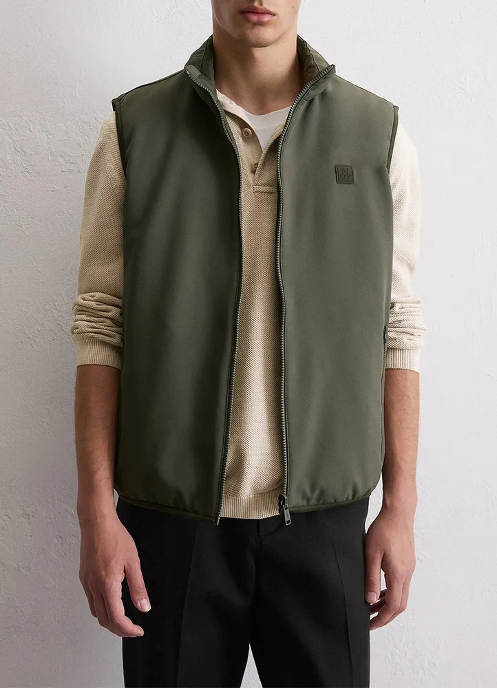 Lightweight and functional for changeable days: this water-repellent quilted vest impresses with its reversible design with a soft softshell side and a quilted surface. The quilted side with press stud pockets provides warmth and protection on cooler days, while the softshell side with zip pockets is ideal for light rain and ensures greater freedom of movement. The thin padding made from recycled polyester keeps you nice and warm, while elasticated cuffs and hem create a snug fit in a regular fit. A versatile companion that combines comfort and timeless quality.