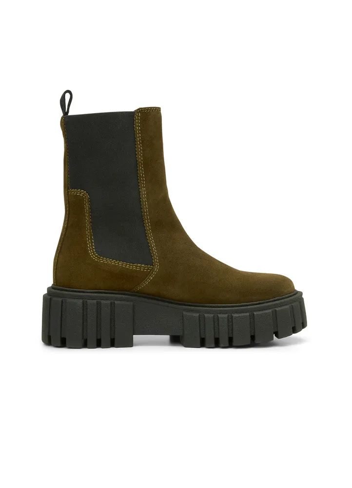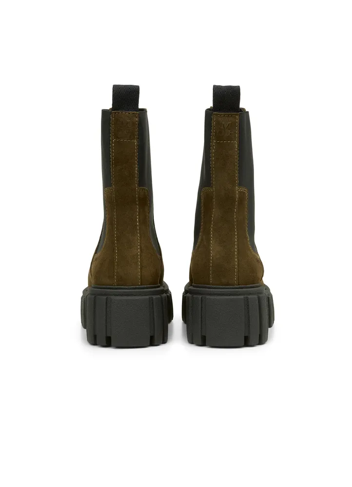 | CHRISTEL 1B A striking look meets relaxed style: the Christel Chelsea boot made from soft suede cowhide with a high shaft and wide stretch inserts combines a clear character with practical comfort. The breathable lining and recycled microfiber insole are padded with memory foam and ensure a pleasant feel. The profiled bulky sole made from lightweight TR provides stability and an urban accent. Made in Portugal. Leather upper |