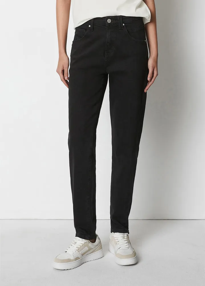 Casual, relaxed, and effortlessly stylish, the Freja boyfriend jeans from Marc O’Polo DENIM are a modern wardrobe essential. Crafted from a high-quality organic cotton blend with a touch of elastane, they offer comfort and stretch in a sustainable, responsibly produced fabric. Designed with a loose fit, dropped crotch, tapered leg, and regular length, these jeans feature a classic five-pocket style, black wash, matching seams, and silver-colored rivets. Perfect for a laid-back yet polished look.