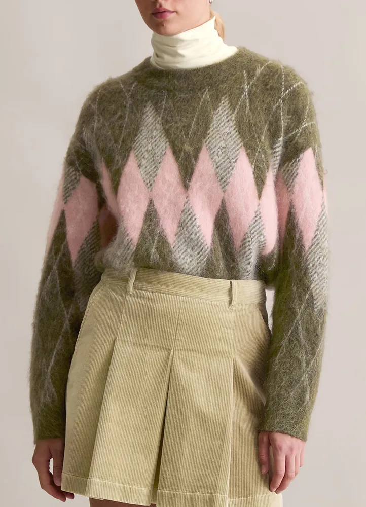 Modern preppy style meets cozy comfort in this Marc O’Polo DENIM sweater. Featuring a yarn-dyed diamond argyle pattern, it adds a stylish twist to classic knitwear. Crafted from a soft blend of virgin wool, mohair, polyamide, polyester, and elastane, it offers warmth, durability, and a luxurious feel. Designed with a relaxed fit, finely ribbed round neckline, dropped shoulders, and ribbed cuffs and hem, it’s perfect for layering or wearing on its own for effortless everyday style.