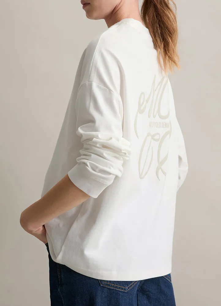 Really easy: the long sleeve top in a relaxed fit with heavily dropped shoulders. This style has a completely new interpretation. It has a loose fit and is made from pure certified organic cotton in a comfortable heavy jersey fabric. With a finely ribbed, classic round neckline and compact ribbed cuffs. A special highlight: the large, color-coordinated print on the back.