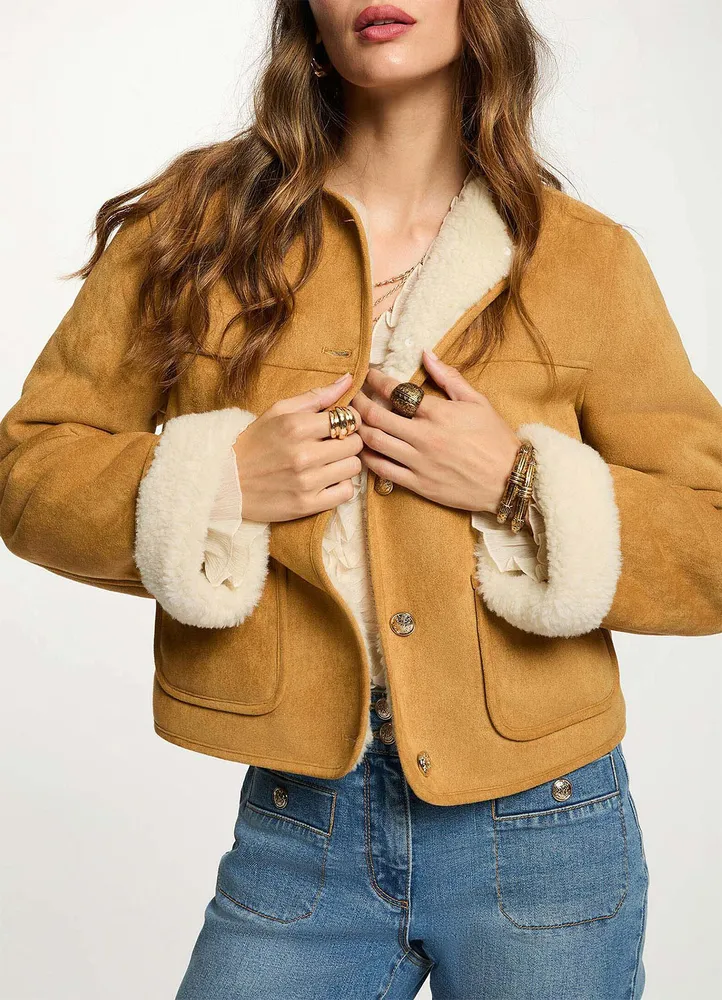 Short Straight Jacket with Faux Fur Effect