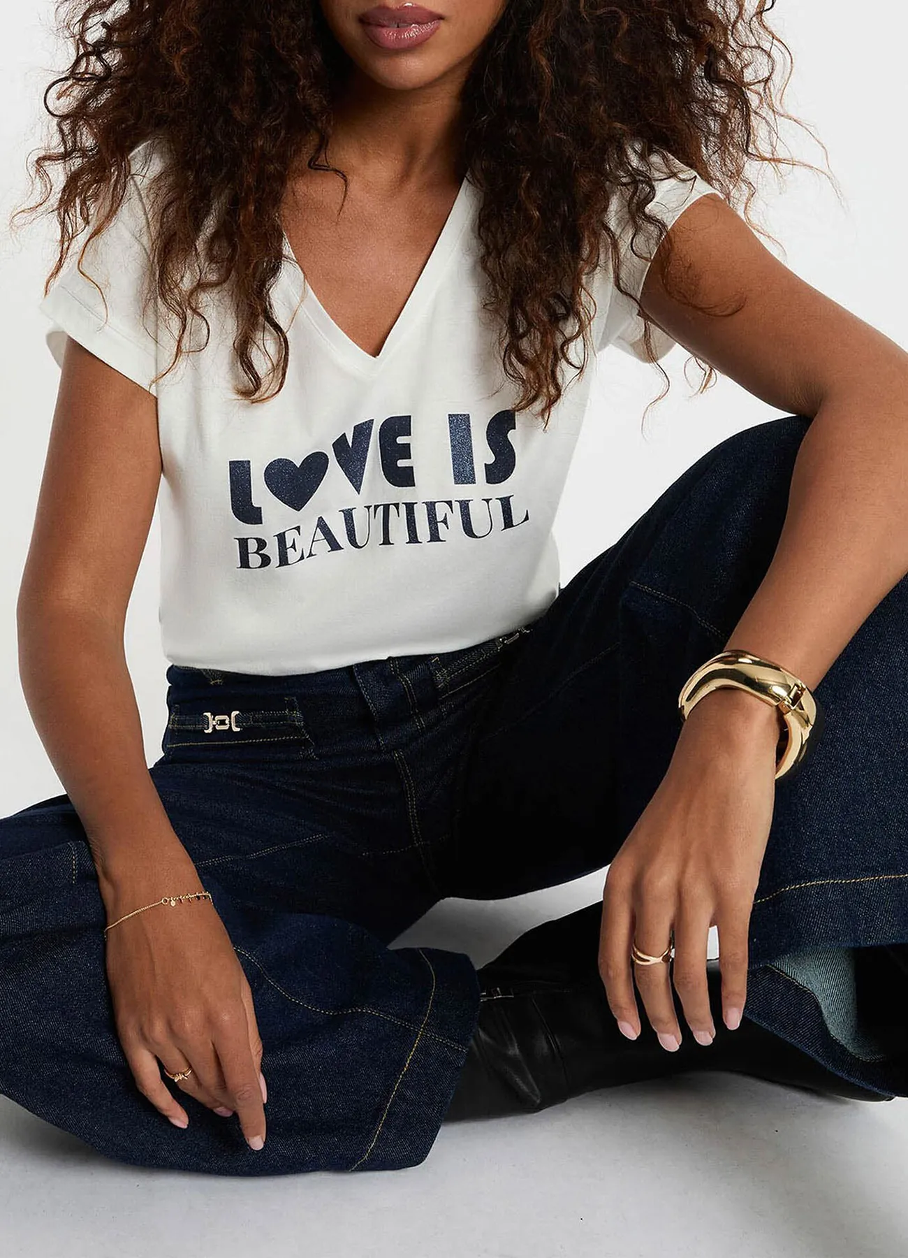 This straight-cut t-shirt flatters all body shapes, creating a feminine and effortlessly natural silhouette. Its casual-chic style brings a touch of modern elegance to everyday wear, making it a versatile essential. A refined piece that balances sophistication and simplicity with subtle ease.