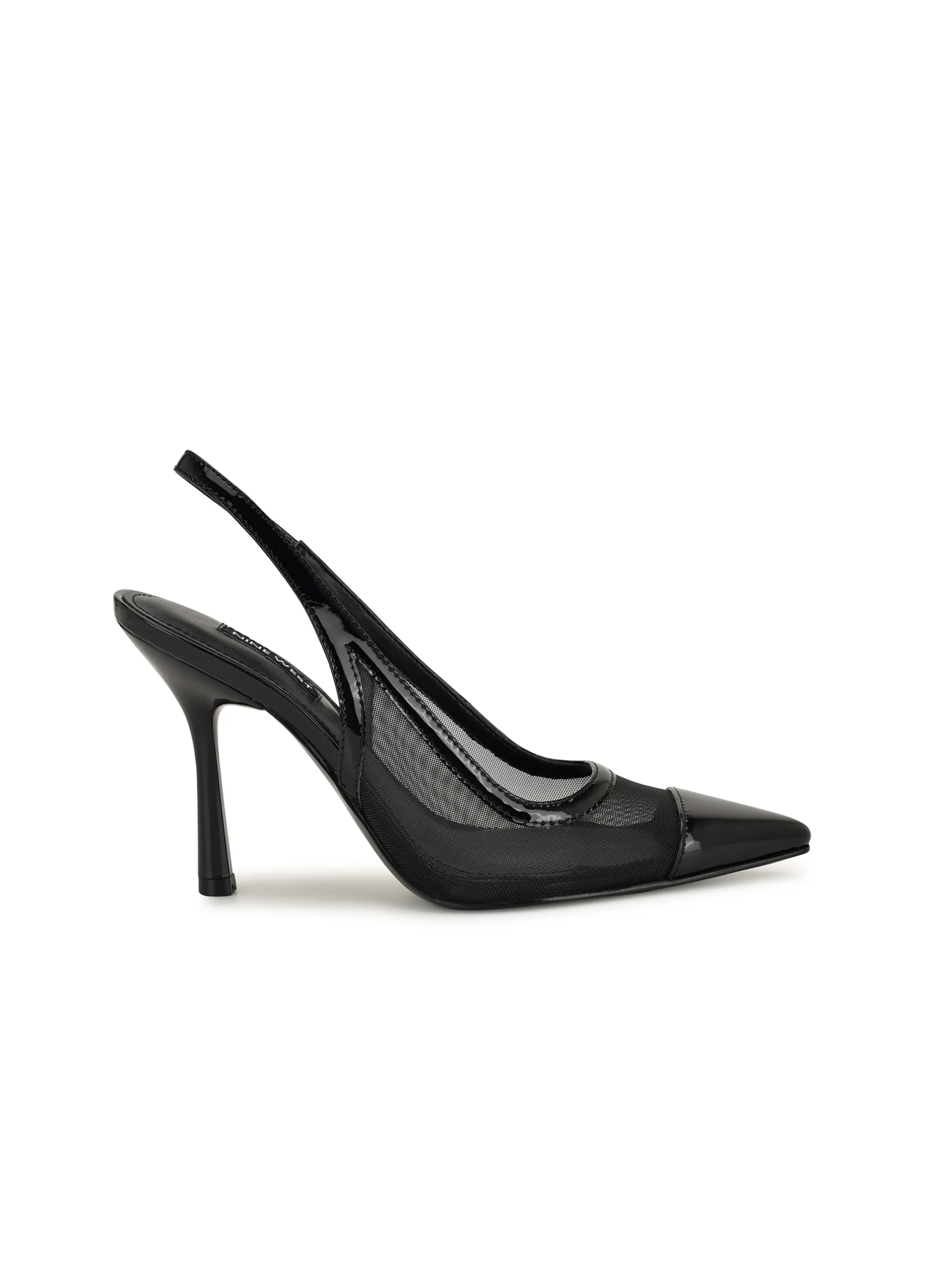 Mesh appeal, meet the pump authority. The Jermain is a pointed-toe slingback with sheer mesh panels, glossy faux patent trim, and a sculpted stiletto heel that commands attention at 3.35 inches. Polished, dimensional, and completely on trend, this is the kind of shoe that takes you from your morning agenda to whatever the night has planned.
