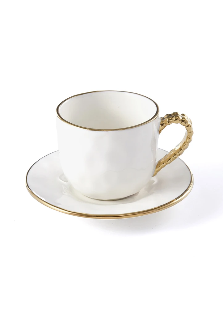 Espresso Cup & Saucer, Size cup: Dia 5 x H 9 cm/ Plate Dia 11 cm, Porcelain, Food safe, Dishwasher and Freezer safe, Stain resistant, tarnish Free.