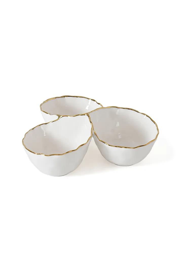 3 SECTION SERVER FROM PORTOFINO COLLECTION, DIA: 21, H: 8 CM, PORCELAIN, FOOD SAFE, DISHWASHER AND FREEZER SAFE