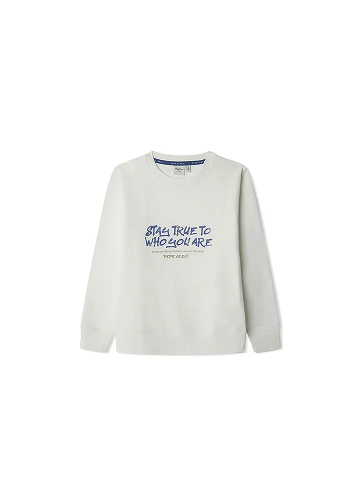 Long sleeve, crew neck, regular fit sweatshirt with “Stay True To Who You Are” text print on the front.