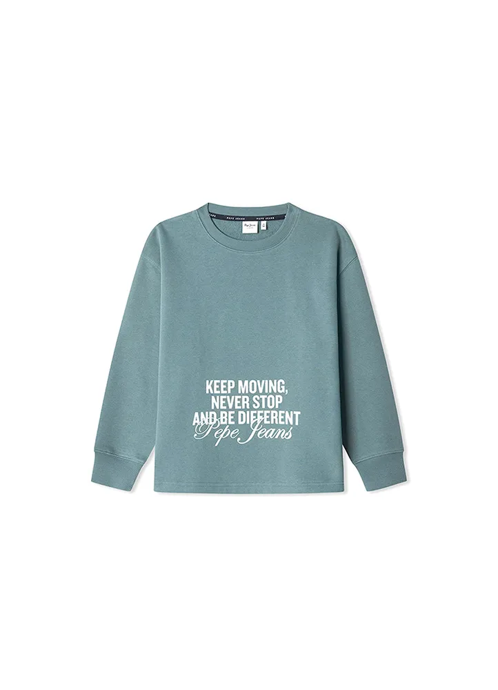 Long sleeve, crew neck, relaxed fit sweatshirt with KEEP MOVING, NEVER STOP AND BE DIFFERENT text print on the front, and ribbed collar and cuffs.