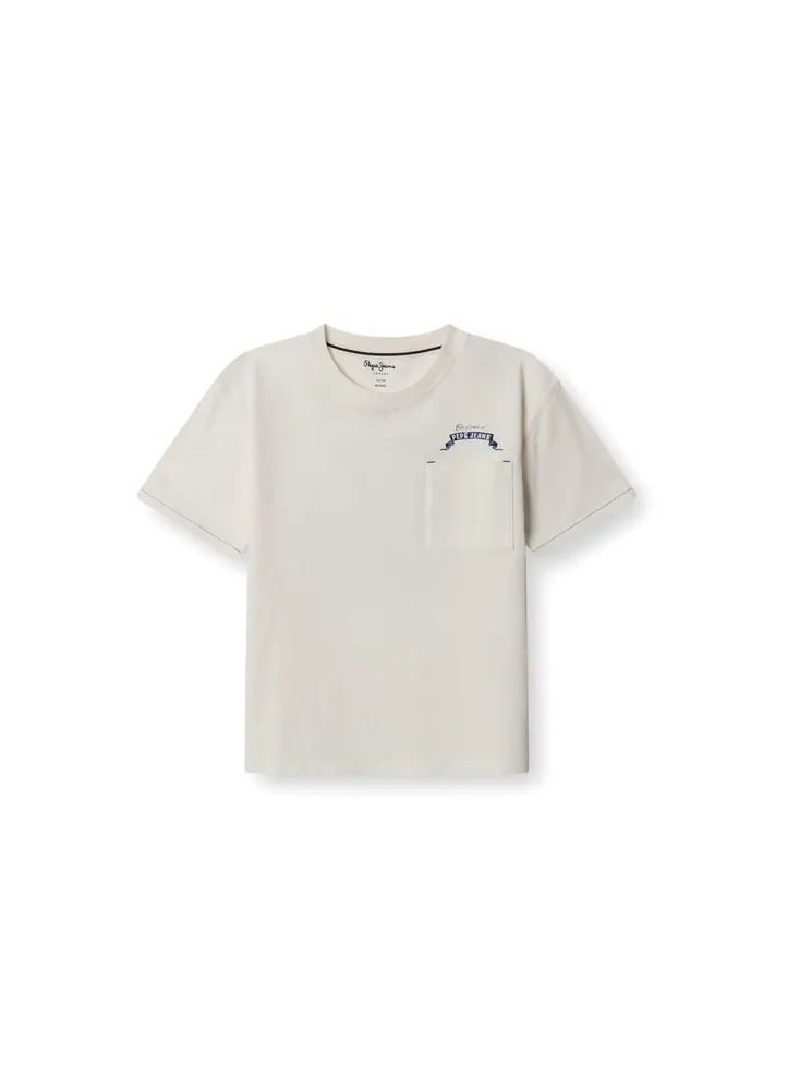 Crew neck T-shirt with chest pocket.