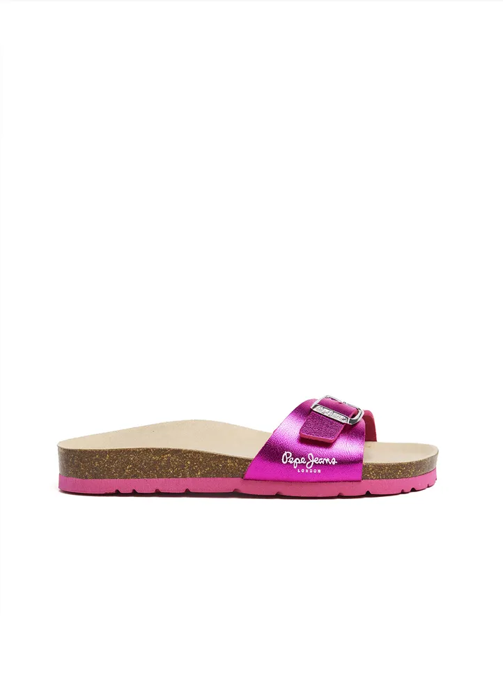 Anatomic sandals featuring a stylish single buckle fantasy design, logo on footbed, and a classic logo on the lateral.