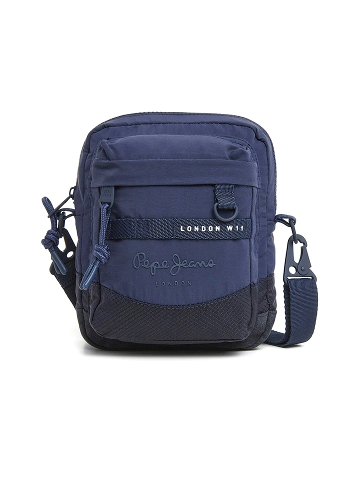 Cross bag made from nylon fabric, featuring a removable and adjustable shoulder strap, two compartments with zipper closures on the front, an inner pocket, decorated with nylon tape on the front, customized pullers, embossed classic logo on the front, and debossed logo on the back.