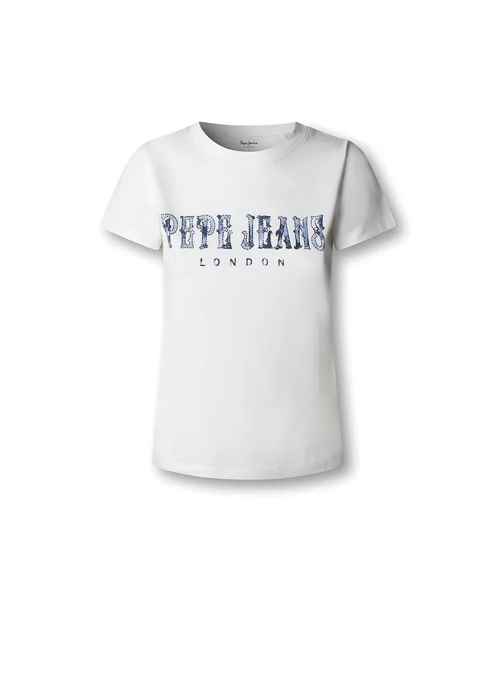 Short-sleeve T-shirt featuring a Pepe Jeans logo on the front with a watercolor-inspired design.