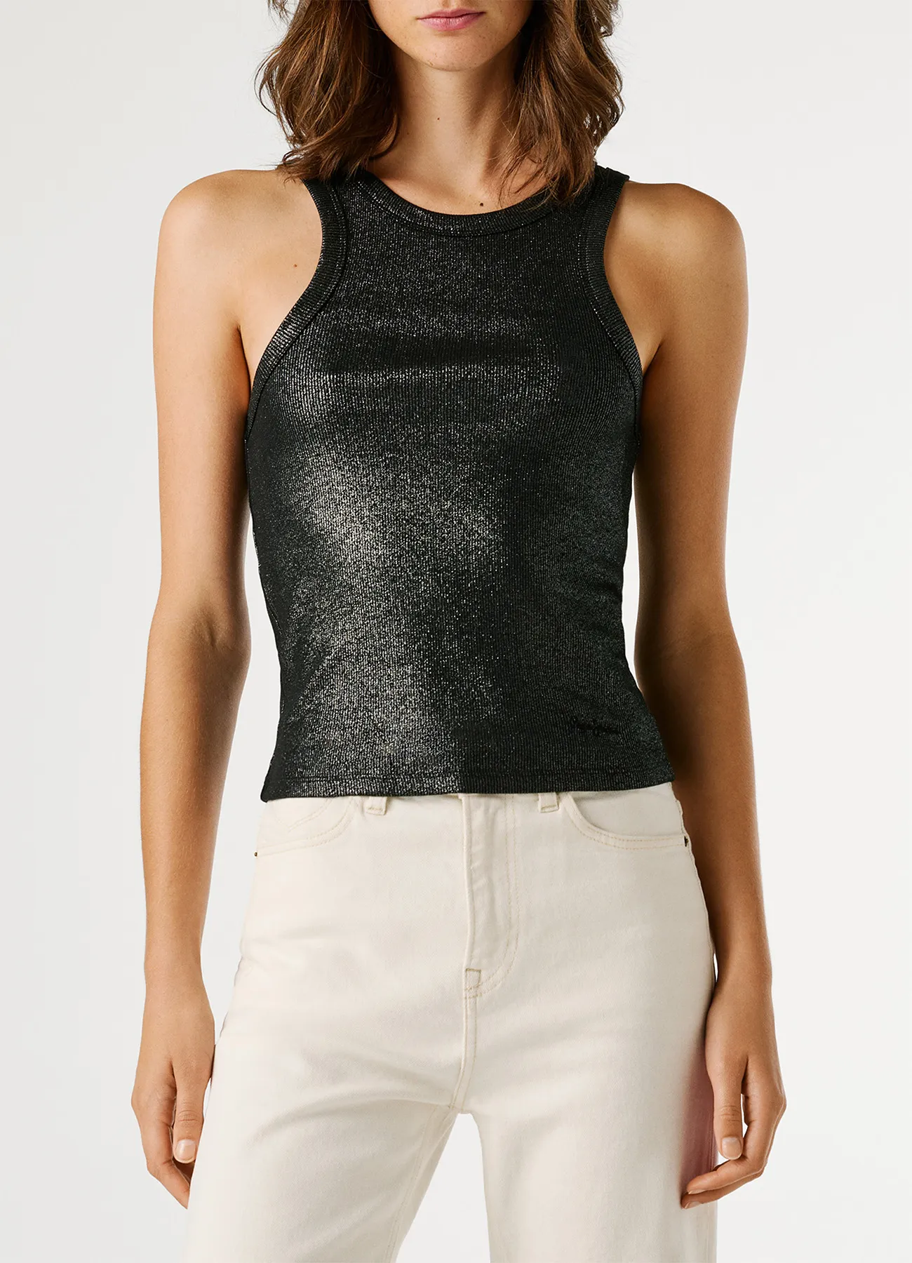 Subtle metallic threads give the top a shimmering effect, while the matching Pepe Jeans logo embroidered on the hem adds a signature finishing touch.