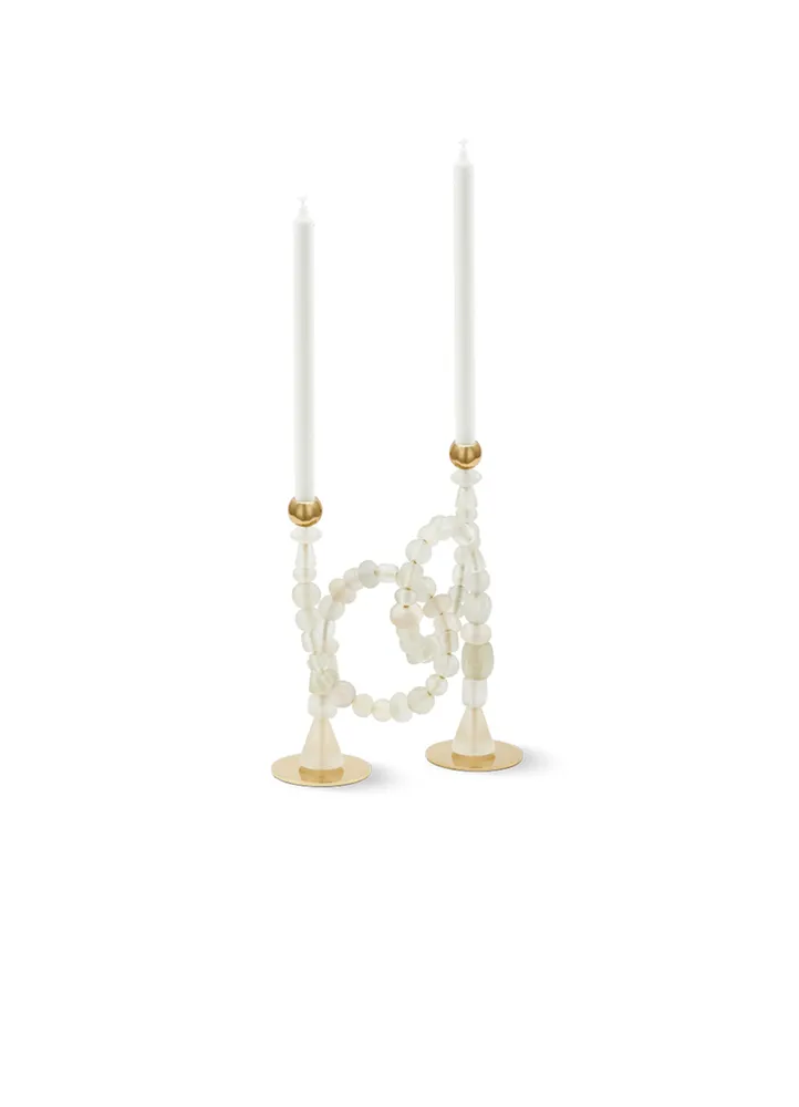 BEADS CANDLE HOLDER, STAINLESS STELL AND ALUMINIUM METAL FRAME WITH RECYCLED GLASS BEADS, D: 33 X 12, H: 38 CM