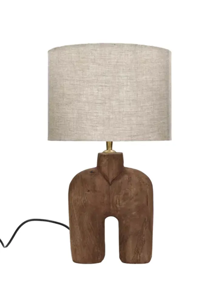 LAMPEDUSA TABLE LAMP, MANGO WOOD AND LINEN, DIA: 28, H: 49 CM
