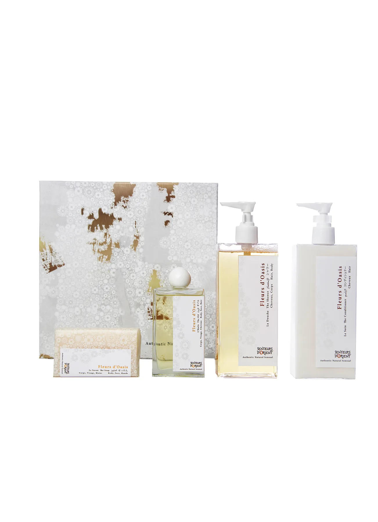 A generous set of our sunny and warming care staples featuring an exclusive Fleurs d’Oasis bar soap, only available in this gift set.