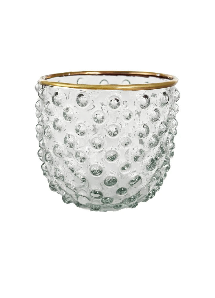Glass T-light holder dotted with gold rim d10,5;h10cm.