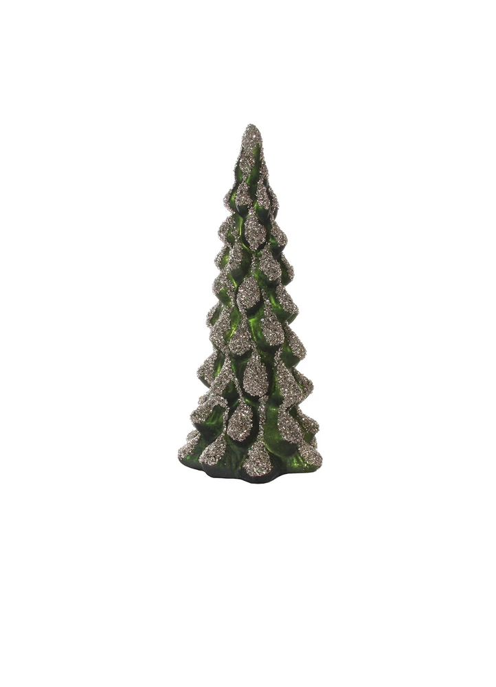 GLASS TREE DECORATED WITH ANTIQUE GLITTER, H: 25 CM