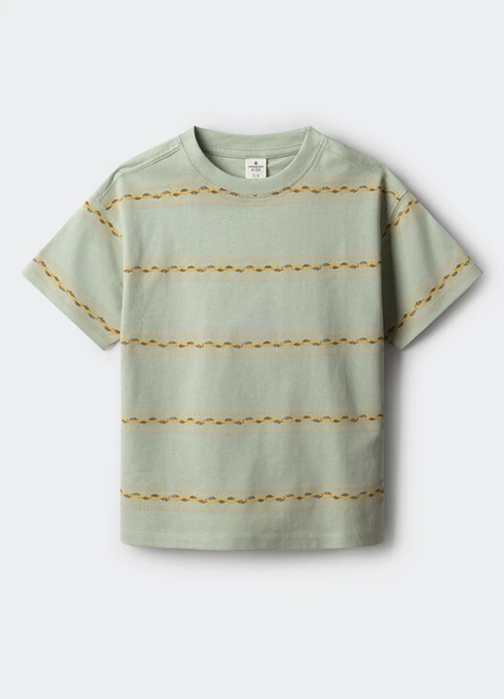 Short sleeve, crew neck, regular fit T-shirt for boys, featuring an all over print with border stripes.