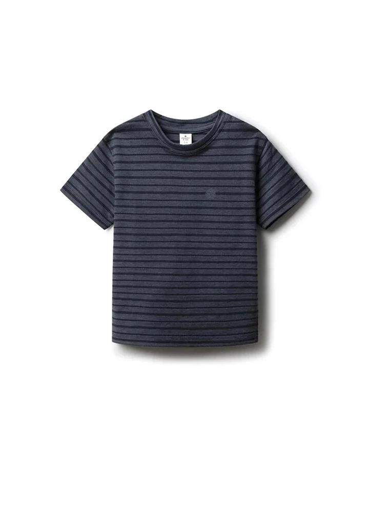 Short sleeve, crew neck, regular fit textured t-shirt for boys with all over stripes.