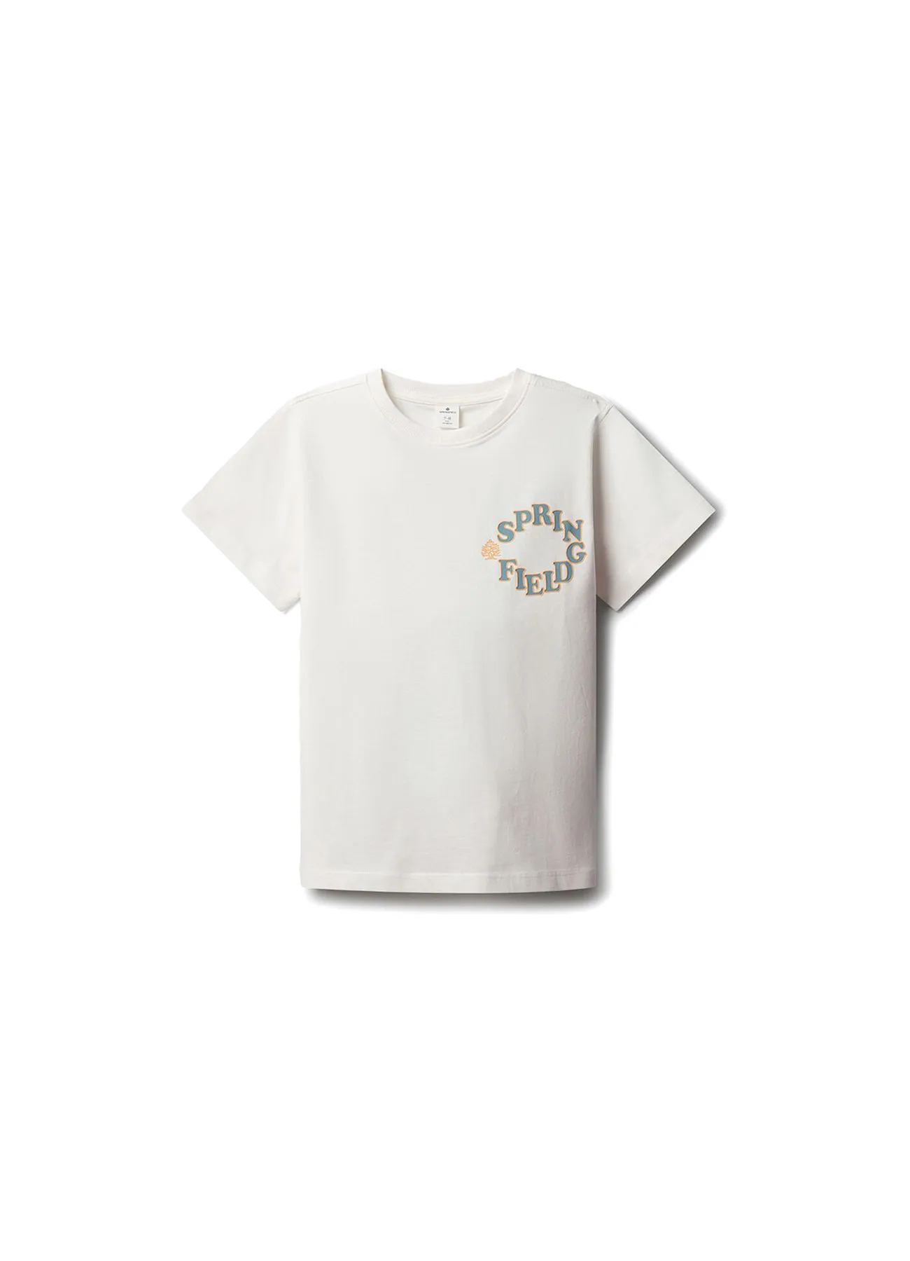 Short sleeve, crew neck t-shirt with “Springfield” text and a tree logo in a round shape printed on the back and chest.